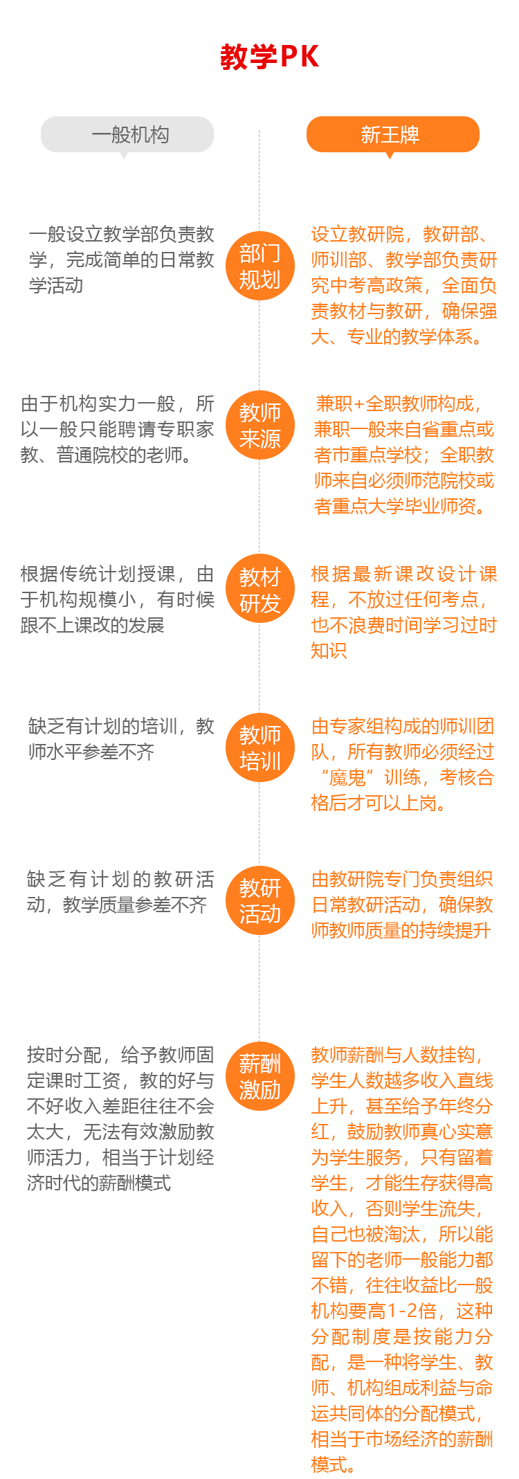 聆听大师的声音 只有一流的教师,才会有一流的教育!李嘉诚说方向对了越努力越成功,上培训机构也一样,老师选对了,越努力越进步。 用强大的师资力量,为学生注入强大的力量,帮我们赢得了良好的口碑与声望,也成了我们未来发展的保障。 实力与激情的完美结合,给学生一颗奔腾的心!大师执鞭,动感引爆!名师风范,激情演绎!全情投入,激情飞扬!化学大师,舍我其谁?全程互动,个性十足!教法独特,惟妙惟肖!每一场课,都是一场演出!跟对老师,学习就这么简单!数学学习,在于抓住本质! 教师质量是我们的生命线,也正因为师资是教学和辅导的核心环节,所以新王牌一直以名师为本,以“请名师,用名师”为我们的基本办学模式。 办学以来,新王牌在师资团队建设方面投入巨大,已经初步建成一支横跨语文、数学、英语、物理、化学、生物、地理、政治、历史等学科名师团队。 课后答疑:与名师面对面,感受智慧碰撞的火花!课上指点,高效学习沉迷学习,无法自拔!交流探索,智慧碰撞!当堂答疑,当场消化!指点迷津,融会贯通!课后交流,智慧碰撞!学习不仅是传授,更是探讨,更是互动!我们欢迎学生主动提问,主动与老师探讨,一起享受探索的乐趣!!停止犹豫,马上行动! 立即报名 首页品牌介绍小班教学强劲师资选课大厅校区分布你问我答X点击复制微信号 添加微信咨询更便捷