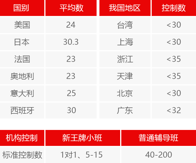 各国、各地关于小班的班额: